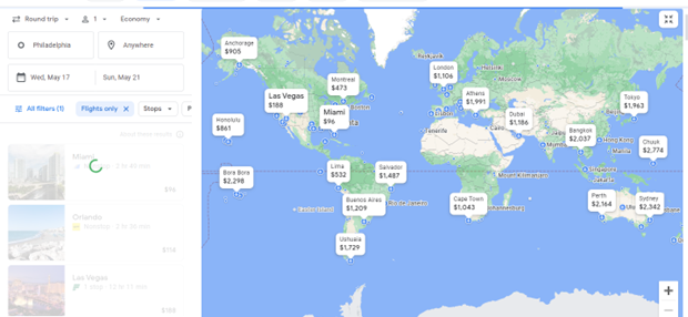 What you do is plug in the airport or city you want to leave from, and the dates you want to travel (and if you’re flexible on when, you can let the search engine know that, too!). Leave the destination empty or just put in a continent.