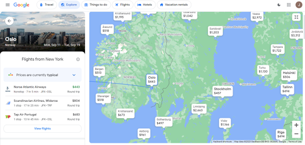 After scooting around the map and setting the dates to be flexible, I found a non-stop flight from New York to Oslo for just $443!